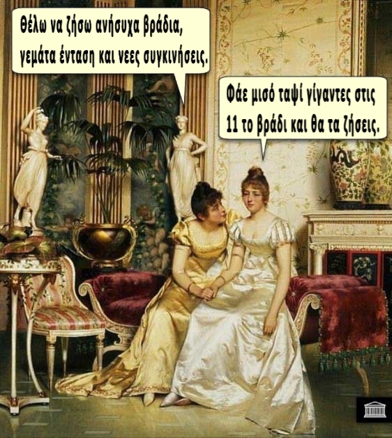 Αν νομίζεις ότι σε ειρωνεύομαι, μάλλον παρεξήγησες κάτι χιουμοριστικό. Όσον αφορά τα οικονομικά μου, όντως το φυσάω χρήμα, αν και μου λείπουν εννιακόσιες ενενήντα εννιά χιλιάδες και εννιακόσια ενενήντα ευρώ για να συμπληρώσω το πρώτο μου εκατομμύριο . -