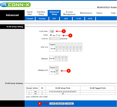 Καλησπέρα σας!!! Έχω ένα παλιό Baudtec TW263R4 από αυτά που έδινε κάποτε ο ΟΤΕ, το οποίο με τις απαραίτητες ρυθμίσεις το χρησιμοποιώ επιτυχώς ως access point αξιοποιώντας και τις τέσσερις ethernet αλλά και το WiFi του. Το WiFi της συγκεκριμένης συσκευής βέβαια, το χρησιμοποιώ μόνο σε περίπτωση που έρθει κάποιος επισκέπτης στο σπίτι, προκειμένου να μην αναγκάζομαι να δίνω τον κωδικό του κύριου modem router μου. Το κακό είναι ότι αν κάποιος για παράδειγμα, συνδεθεί ασύρματα με το laptop του και εκείνη τη στιγμή έχω ανοιχτό τον κεντρικό μου υπολογιστή, μπορεί να δει οτιδήποτε έχω μοιρασμένο. Κάπου διάβασα, πως για να αποφύγω κάτι τέτοιο, μπορώ να χρησιμοποιήσω το VLAN που έχει το συγκεκριμένο μόντεμ και να «απομονώνω» το WiFi σε έναν δεύτερο VLAN. Κάνοντας τις παρακάτω ρυθμίσεις, το laptop συνδέεται στο Baudtec, όντως δεν μπορεί να δει άλλους υπολογιστές, αλλά δεν έχει internet!!! Κάποια ιδέα του τι μπορεί να κάνω λάθος; Ευχαριστώ πολύ για τον χρόνο σας!!!