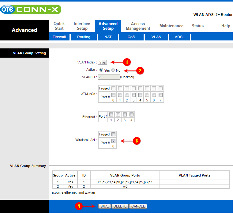 Καλησπέρα σας!!! Έχω ένα παλιό Baudtec TW263R4 από αυτά που έδινε κάποτε ο ΟΤΕ, το οποίο με τις απαραίτητες ρυθμίσεις το χρησιμοποιώ επιτυχώς ως access point αξιοποιώντας και τις τέσσερις ethernet αλλά και το WiFi του. Το WiFi της συγκεκριμένης συσκευής βέβαια, το χρησιμοποιώ μόνο σε περίπτωση που έρθει κάποιος επισκέπτης στο σπίτι, προκειμένου να μην αναγκάζομαι να δίνω τον κωδικό του κύριου modem router μου. Το κακό είναι ότι αν κάποιος για παράδειγμα, συνδεθεί ασύρματα με το laptop του και εκείνη τη στιγμή έχω ανοιχτό τον κεντρικό μου υπολογιστή, μπορεί να δει οτιδήποτε έχω μοιρασμένο. Κάπου διάβασα, πως για να αποφύγω κάτι τέτοιο, μπορώ να χρησιμοποιήσω το VLAN που έχει το συγκεκριμένο μόντεμ και να «απομονώνω» το WiFi σε έναν δεύτερο VLAN. Κάνοντας τις παρακάτω ρυθμίσεις, το laptop συνδέεται στο Baudtec, όντως δεν μπορεί να δει άλλους υπολογιστές, αλλά δεν έχει internet!!! Κάποια ιδέα του τι μπορεί να κάνω λάθος; Ευχαριστώ πολύ για τον χρόνο σας!!!