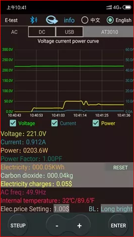 1. Kinda late I know.... είναι και ελάχιστα DIY λύση. anyway βρήκα το AT3010 AC Meter στα 9.70€ (10.20$) το οποίο και αγόρασα, προφανώς μέχρι να παραλάβω δεν μπορώ να κάνω πολλά σχόλια πέρα από τα specs. Τι το ξεχωρίζει; ότι συνδέεται με Bluetooth στο κινητό με δική του εφαρμογή και σου επιτρέπει να κάνεις εξαγωγή τα δεδομένα, οψόμεθα. Photos Video (russian δυστυχώς), στο συγκεκριμένο λεπτό φαίνεται που κάνει εξαγωγή σε excel. Specs App είναι zip file έχει το e-test app.apk και μια εικόνα με οδηγίες και specs. Προσοχή υπάρχει έκδοση και χωρίς Bluetooth αλλά και έκδοση για DC.
