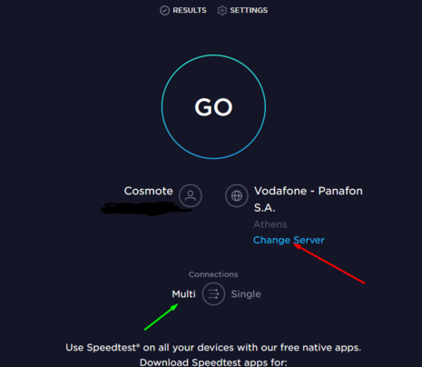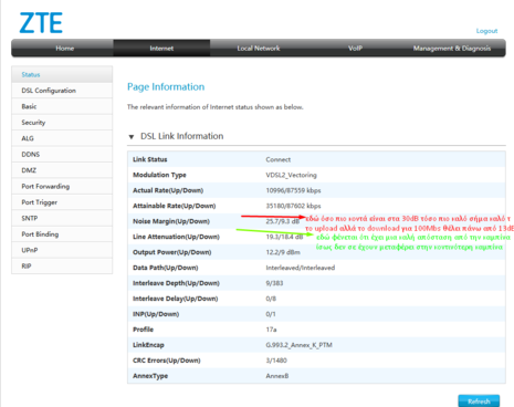 επίσης εδώ μπορείς να αλλάξεις server και να επιλέξεις τα conections αν θα είναι (vectoring η single αλλά όπως έβαλε και ο @UltraB βάλε να κατεβάσεις το 1gb αρχείο και δες πόσο τερματίζει και ακύρωσέ το δεν χρειάζεται να κατέβει αναλύοντας λίγο τις πληροφορίες του ρούτερ σου για αρχή δεν είσαι στην κοντινότερη καμπίνα είσαι αρκετά μακρυά δεύτερον τη συνδεσμολογία έχει γίνει (υπάρχει κάποιο φιλτράκι) υπάρχει voip δηλαδή η τηλεφωνική συσκευή είναι συνδεδεμένη πάνω στο moder-router ZTE ? -
