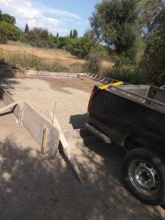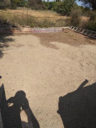 καλημερα παιδες, μιας και δεν με χωραει ο τοπος και αφου ημουν στην αδρανεια σχεδον χρονο(φανταρικο) εχω ερθει με πολυ ορεξη για δουλεια. αποφασισα λοιπον να κατασκευασω μια νεα αποθηκη στο χωραφι μου που ειναι καντα στο σπιτι για να μην κανω μεγαλα δρομολογια.(αυτη που εχω τωρα ειναι στα 40 λεπτα μακρια). τωρα ειμαι στην φαση που κουβαλαω χωμα!! με τον αγροτη καροτσα καροτσα και ελπιζω να τελειωσω μετα στην εβδομαδα. η αποθηκη θα γινει 6χ5 μ και 3μ υψος χτιστη με πλυθες. θα σηκωθει απο το εδαφος 30εκ + 10 το δαπεδο(40 συνολο). εδω ειναι το σταδιο στο οποιο βρισκομαι τωρα για το δαπεδο θα ερθει μπετονιερα να ριξει μπετο γυρο στα 5 κυβικα. ειναι σχετικα μικρη η αποθηκη αλλα θα γινουν αλλα 5 μετρα μπροστα μονο σκεπη. εδω χρειζομαι μια συμβουλη. εχω πατοκολωνες απο σκαλωσιες. λετε να βαλω αυτες για στηριγμα στην εξω σκεπη μαζι με ψ για να κραταει το καδρονι η να παρω κυλοδοκους??