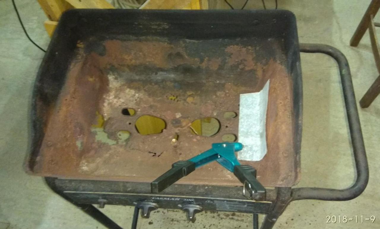 Ευχαριστώ για την παρατήρηση! Δεν μπορώ να πω με σιγουριά αν είναι γαλβανισμένη... Μάλλον; Στον πάτο πιάνει ελάχιστη θερμοκρασία.... Ποιο πολύ από το καυτό λίπος που τρέχει! Θα παρατηρήσουμε θερμοκρασίες και αν δούμε αλλοίωση σε χρώμα κλπ στα μπαλώματα θα φύγουν αν δε φύγει ωστόσο ολόκληρος ο πάτος -