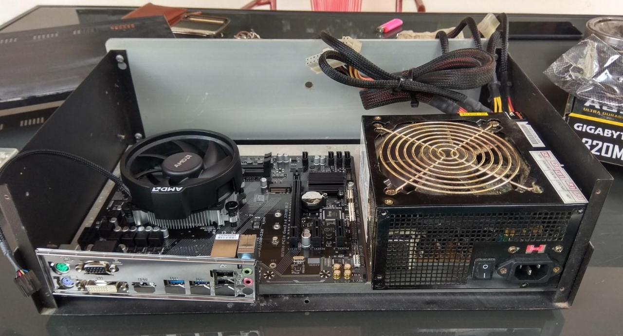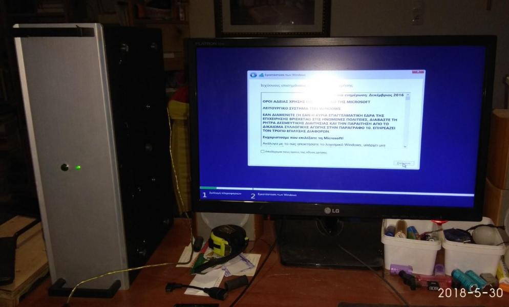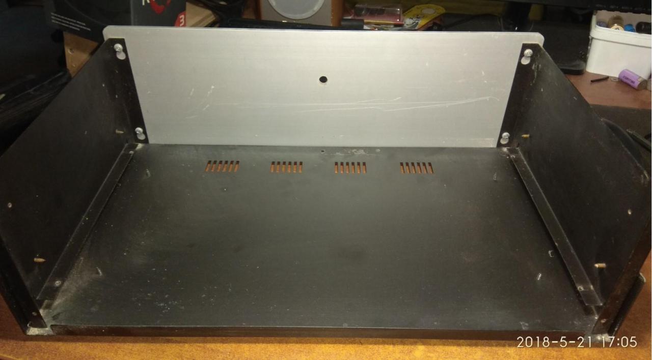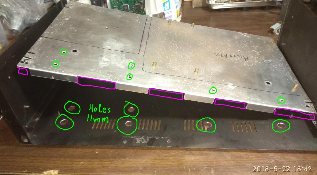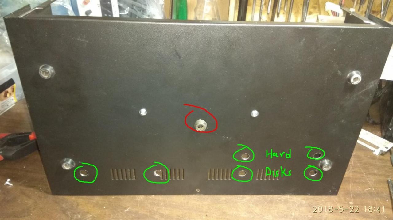 PC CASE από παλιό κουτί κατασκευών και τα βρισκούμενα για φίλο! mobo micro ATX + CPU + memory αγοράστηκαν το κάτω καπάκι γυρίστηκε αντίστροφα για να είναι οι γρίλιες εισαγωγής αέρα μπροστα Η αλουμινένια βάση στήριξης μεταφέρθηκε λίγο πιο πίσω έγιναν πρόβες τρύπημα και πάσα για τους αποστάτες που είναι από παλιά κουτιά υπολογιστών μετά ξύσιμο κεφαλιού για το πως θα γίνει η πίσω μεριά άρχισε το ράβε - ξήλωνε από παλιό κουτί υπολογιστή βάψιμο εδώ έγιναν τρύπες για σκληρούς δίσκους (μέχρι 3) και καποια κοψίματα για τον αερισμό εξτρά πέμπτο πόδι κάτω και λάστιχα να πατάει καλά η αλουμινένια βάση στο κάτω καπάκι power button & power led σχεδόν έτοιμο πίσω εκεί που είναι η κάρτα γραφικών το προόριζα για ανεμιστήρα 8cm γιατί νόμιζα ότι θα είναι onboard η κάρτα γραφικών δεν θεώρησα αναγκαίο να κλειστούν τα κενά με καποια διάτρητη λαμαρίνα ή σίτα αργότερα βλέπουμε... μπήκαν λειτουργικό κλπ και τώρα εκτελεί χρέη μουσικής πηγής & ταινιών στο καθιστικό του φίλου μου Βασίλη