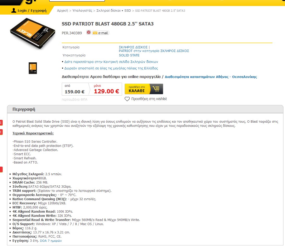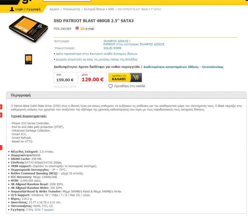 [e-shop.gr] PATRIOT BLAST 480GB SSD - 129€