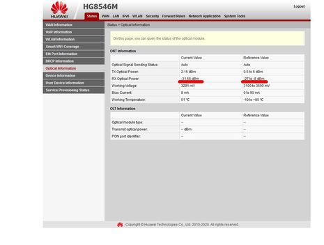Το RX optical έπεσε στα επιτρεπτά ορια -26.78 και όντος