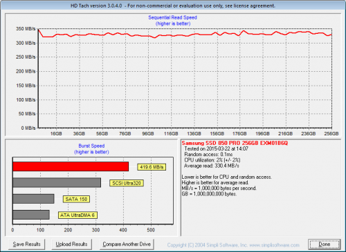 Να και το δικό μου! Samsung 850 PRO 256GB (όχι με το τελευταιο firmware) Crystal Disk Mark HD Tach
