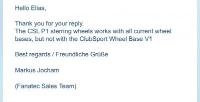 Λοιπον εστειλα email στη fanatec και μου απαντησε οτι κανενα τιμονι που εχει xbox one δεν δουλευει στη cswb v1!? Τους απαντησα οτι το δικο μου δουλευει μια χαρα και περιμενω απαντηση. edit: υπαρχει και το πρωτο στα 100 ευρω. https://www.fanatec.com/eu-en/steering-wheels/csl-steering-wheel-p1-for-xbox-one-eu.html και αυτο γραφει οτι δεν δουλευει με CSWB V1... εμενα μια χαρα μου δουλευει παντως μαλλον το κανουν γιατι θελουν να πουλησουν καμια βαση. -