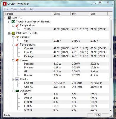 Πρόσφατα καθάρισα ενός φίλου ένα vaio με τον 2410m πάνω. Σαν ψύκτρα πάνω κάτω ίδια είναι με του toshiba. Θερμοκρασίες 70-80 βαθμοί με πολύ έντονη δουλειά. Απλά παρατηρούσα ότι παρότι μόλις το είχα καθαρίσει και είχα βάλει και νέα πάστα, πήγαινε μέχρι 2,7ghz και πιο αραιά μέχρι 2,9ghz από το turbo. Στο δικό μου με τον i3, με πολύ έντονη δουλειά, πολλές καρτέλες και προγράμματα μαζί, πάει μέχρι 70 βαθμούς.
