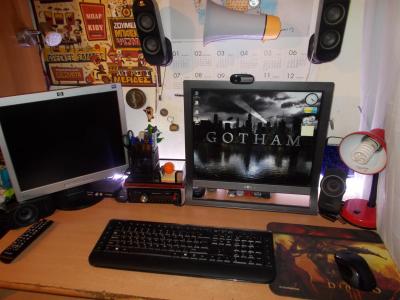 Να και το δικό μου. Οι οθόνες θέλουν κάποια στιγμή άλλαγμα. Το κουτάκι κάτω από την αριστερή οθόνη είναι vga switch και στην επιλογή 1 δίνει σήμα από το pc 2 της υπογραφής μου και στην επιλογή 2 κάνει επέκταση οθόνης από το pc 1 της υπογραφής μου.