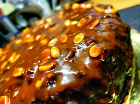 τουρτα με σιροπι απο καφε απλη κρεμα σοκολατας με καραμελα και 2 στρωσεις απο ganache με κουβερτουρα υγειας,κουβερτουρα γαλακτος και topped με καραμελα με αλατισμενα φυστικια κολοκυθοκεφτεδες VID_20191112_045452~10.mp4