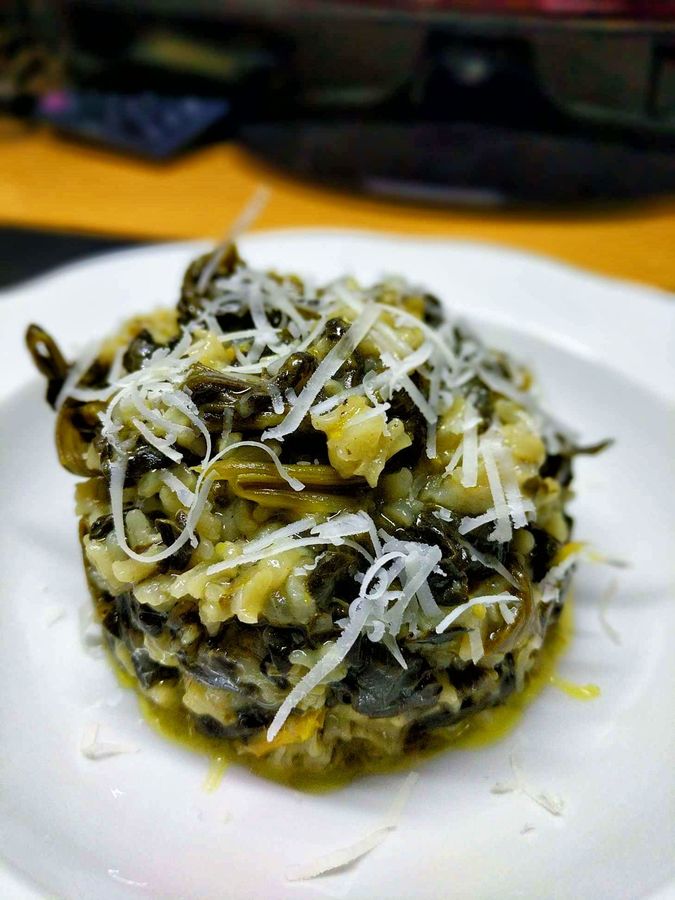 ξημερωματα πεμπτης τοποθεσια καπου στην νεα σμυρνη εγω και 1 κιλο σπανακι τοσο απαλη και συγχρονως γλυκια και γεματη γευση σπανακορυζο με λιγο ζαχαριτσα εξτρα να σπασει την βαρια γευση του σπανακιου,καλη δοση μοσχοκαρυδου,καλο βουτυρο,λαδακι,κρεμμυδακι,λευκο κρασι,ζωμος κοτοπουλου και λιγη κεφαλογραβιερα αμφιλοχιας Κ Ο Λ Α Σ Η