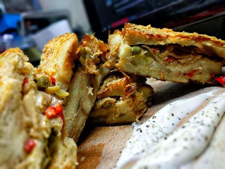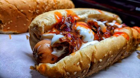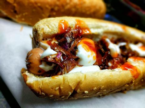 hawt dawg απο κοτοπουλο,γαλοπουλα(καλη τυχη) mayo ketchup καραμελωμενα κρεμμυδια και ενα τοστ φουρνου με ενταμ,πιπεριες,κρεμμυδι,γαλοπουλα,γκουντα καπνιστη και κεφαλογραβιερα
