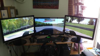 Τελικά αποφάσισα να περιμένω για τη δεύτερη γενιά των VR HRMs, αλλά με 100€ χτύπησα μια μεταχειρισμένη LG 26" 1920χ1200 και σε συνδυασμό με τα δύο monitors που είχα ήδη μπήκα στην εποχή του triple screen. To κεντρικό monitor είναι 27 " 2560χ1440 ips και τα δύο πλαϊνά 26" 1920χ1200, οπότε λόγω διαφορετικού dot pitch τα πλαϊνά monitors έπρεπε να τα ανεβάσω πιό πάνω για να ευθυγραμίζονται στο κέντρο αλλά όταν κάθομαι στο κάθισμα φαίνονται μια χαρά, 150 FoV στο iRacing από εκεί που είχα 52 Δύστυχως το SoftTH δεν υποστηρίζει DX11 κάτι που θα έκανε τη ρύθμιση πιο εύκολη αλλά ακόμα και με τις ελάχιστες ρυθμίσεις που έχω κάνει σε ψιλοghetto setup με τα monitor πάνω στο γραφείο δεν υπάρχει σύγκριση σε σχέση με το ένα monitor, απορώ γιατί δεν το είχα κάνει τόσο καιρό -