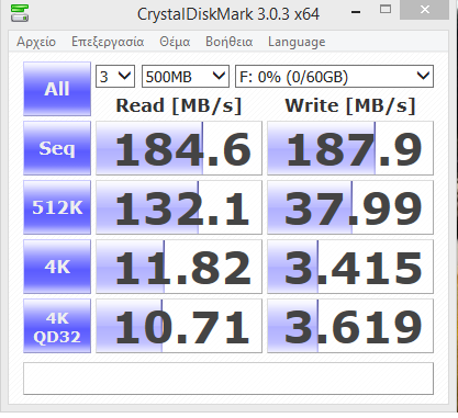 @jax7480, Χρησιμοποιησα τελικα το paragon και τωρα μου βγαζει στο as 2048K-OK,ειπα να τρεξω ενα bench να δω αλλα στο 4Κ-64Thrd εκανε παρα πολυ ωρα και το σταματησα και ετρεξα ενα crystal τα αποτελεσματα ειναι αυτα: (εχω και 3gb γραμενα στο φλασακι δεν ξερω εαν παιζει ρολο) Ειναι φυσιολογικοι οι αριθμοι??Πριν γιατι στα 4κ στο write ειχα παραπανω?? -