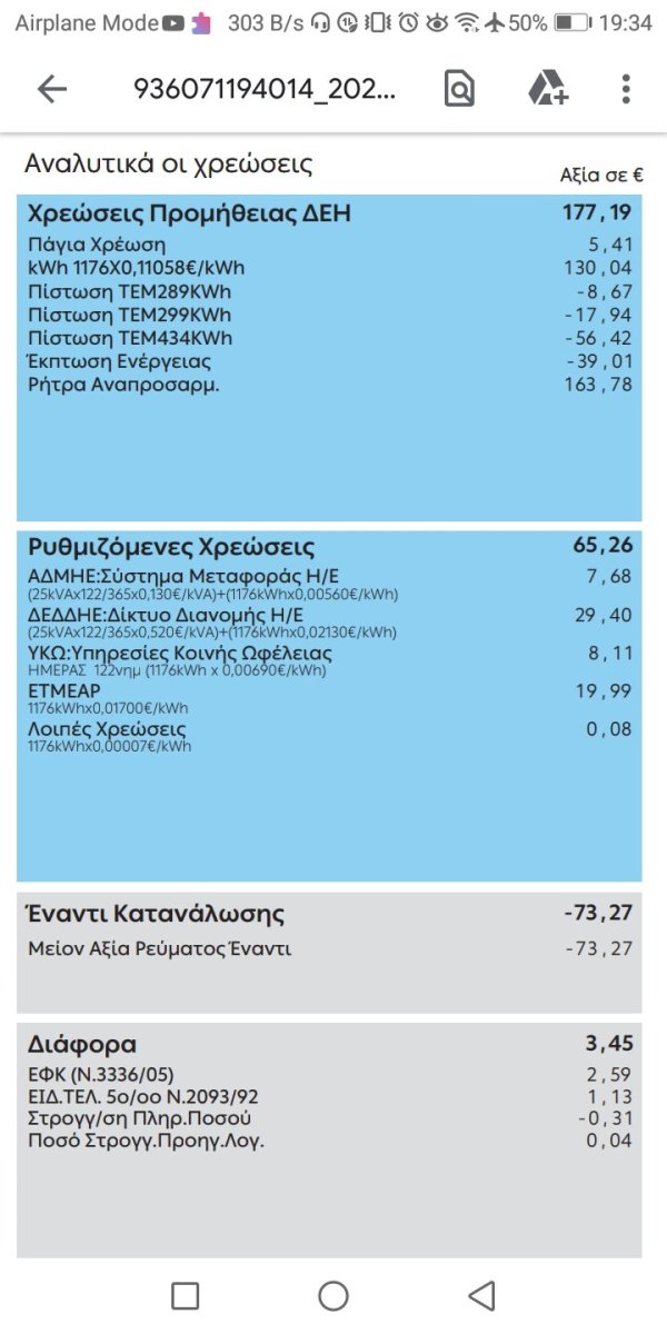 Κατανάλωση Ηλεκτρικής Ενέργειας 1176 kWh Περίοδος Κατανάλωσης 16/08/2021 - 15/12/2021 Στο σπίτι των παππούδων μου αυτό. Γίνεται να τους το αλλάξω? καθώς δεν πρόλαβαν την αλλαγή και θα φεύγει όλη η σύνταξη τους στη ΔΕΗ από δω κ πέρα. Γ1 οικιακό -