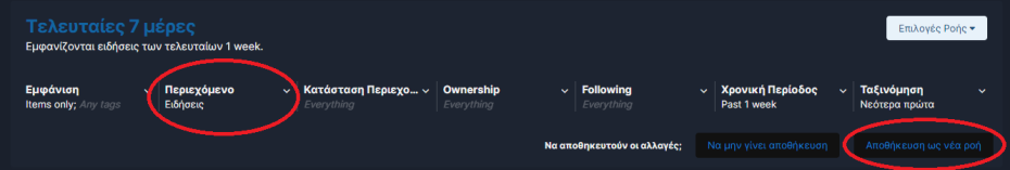TheLab.gr Bugs, Προτάσεις, Βελτιώσεις και όλα τα σχετικάrastaman απάντησε στο θέμα του UltraB topic στην ενότητα Thelab.gr Νέα και σχόλια Όπως πολύ σωστά το περιγράφεις στις ειδήσεις δημιουργήθηκαν κατηγορίες για καλύτερη ταξινόμηση και πλέον το κουμπί "επόμενη αδιάβαστη είδηση" σε μεταφέρει μόνο στις ειδήσεις της κατηγορίας και όχι γενικότερα. Υπάρχουν 2 περιπτώσεις που μπορείς να δοκιμάσεις ποια σε βολεύει καλύτερα. 1) Από το μενού επιλέγοντας ειδήσεις μεταφέρεσαι στην κεντρική κατηγορία όπου εμφανίζονται οι ειδήσεις από όλες τις κατηγορίες. 2) Πηγαίνοντας στο "Νεό περιεχόμενο" έχεις την δυνατότητα να δημιουργήσεις και να αποθηκέυσεις ένα feed το οποίο θα περιέχει μόνο ειδήσεις και όχι όλα τα υπόλοιπα θέματα που εμφανίζονται default. something like. . .