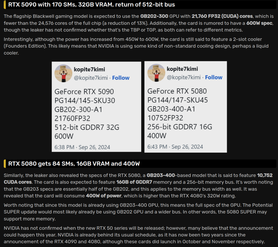 να δούμε που θα κάτσει η μπίλια NVIDIA GeForce RTX 5090 reportedly targets 600W, RTX 5080 aims for 400W with 10% performance increase over RTX 4090 -