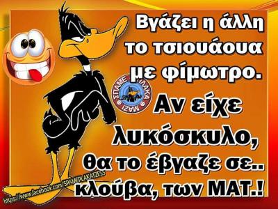 Το καλύτερο φάρμακο για το βήχα είναι η φασολάδα..! Μετά θα φοβάσαι να βήξεις!! ________________________________________________________ Spy σημαίνει κατάσκοπος. Στην Λάρισα σημαίνει σου ταιριάζει..