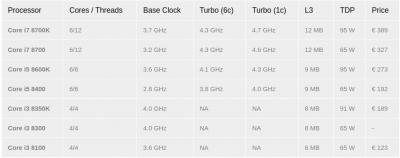 Τελευταίες πληροφορίες για τους νέους Coffee Lake της Intel