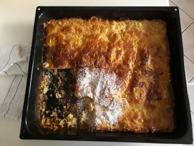 Ετοίμασα μια ωραία μπουγατσούλα, την άφησα να κρυώσει λίγο κι όταν ξαναπήγα κάποιοι είχαν κάνει ήδη ντου! Μέχρι το βράδυ(λέμε τώρα) θα έχει μείνει το ταψί