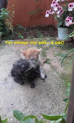 Καλημέρες!! Καλή βδομάδα (άντε να δούμε)!! Το πρωινό άρχισε με γυμναστική, διάσωση και ακροβατικά! Είχαν πέσει (σφηνώσει) 2 γατάκια ανάμεσα στην δεξαμενή του πετρελαίου και τον τοίχο. Γυμναστική με 2t δεξαμενή (είχε 700l μέσα), προσπαθούσα να κρατάω, ισορροπώ κλπ. κλπ. Περιθώριο για να κινηθούν περίπου 5cm και σε κάποια σημεία που έχει τις σιδεριές 2-3cm. Από τις 8 παρά μέχρι πριν λίγο προσπαθούσα να τα απεγκλωβίσω. Η "συμπάθεια" μου προς τις γάτες είναι γνωστή Το 1ο (γκρι) το είχα βγάλει ήταν και το πιο ταλαιπωρημένο. Αυτά, καλημέρες