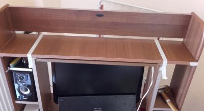 "Φωτιστικό" 2 σε 1 στο γραφείο της μανούλας για να μπορεί να βάφει νύχια κλπ κλπ (μιας και το προηγούμενο φωτιστικό δεν της έκανε) αλλά και για την οθόνη όταν κάθεται στον Η/Υ. Επί την ευκαιρία της έφτιαξα και μεγαλύτερο ράφι για να ακουμπάει τα πράγματα της. Πλαστικές γωνίες στο χρώμα του ξύλου, στις πλαϊνές ανοίχθηκε με σέγα διάδρομος/οδηγός για να μπορεί να πηγαίνει των φωτισμό εκεί που θέλει. Η ταινία led τοποθετήθηκε σε βέργα ακουμινίου που είναι και η βάση της και μπήκε στα κενά/οδηγούς που ανοίχθηκαν πριν. Έγινε και δοκιμή αν ανάβει. τοποθετήθηκε και με χαρτοταινία (αντί μαρκαδόρου..) την τοποθέτησα για να γνωρίζω που είναι το ξύλο από κάτω για τα τρυπήματα/βιδώματα. πριν με το αρχικό ράφι μετά με το φωτιστικό προς τα έξω στην 1η φώτο και τον φωτισμό πίσω από την οθόνη στην 2η φώτο 1η 2η- 2.882 απαντήσεις