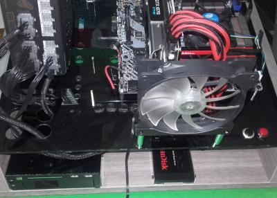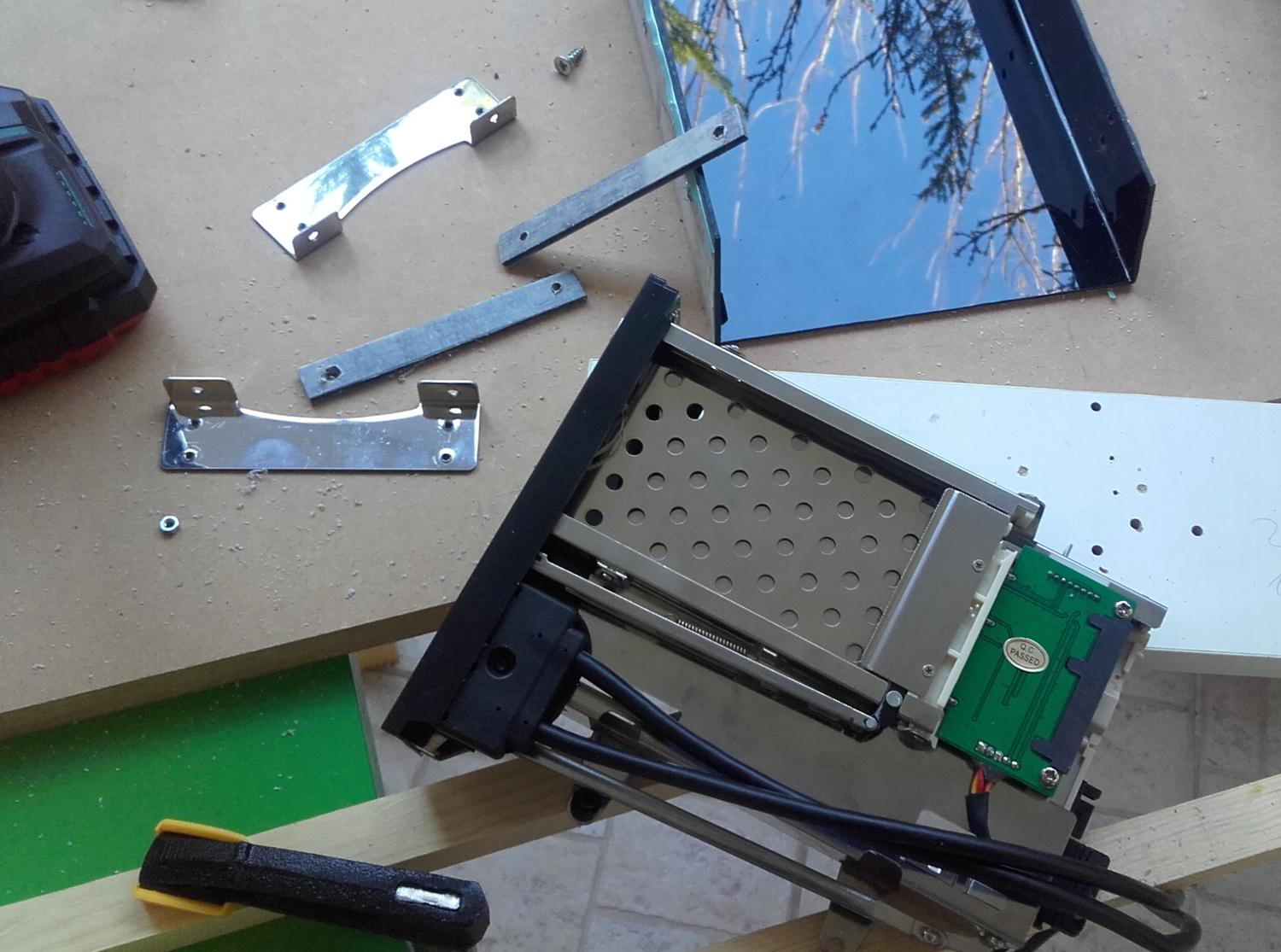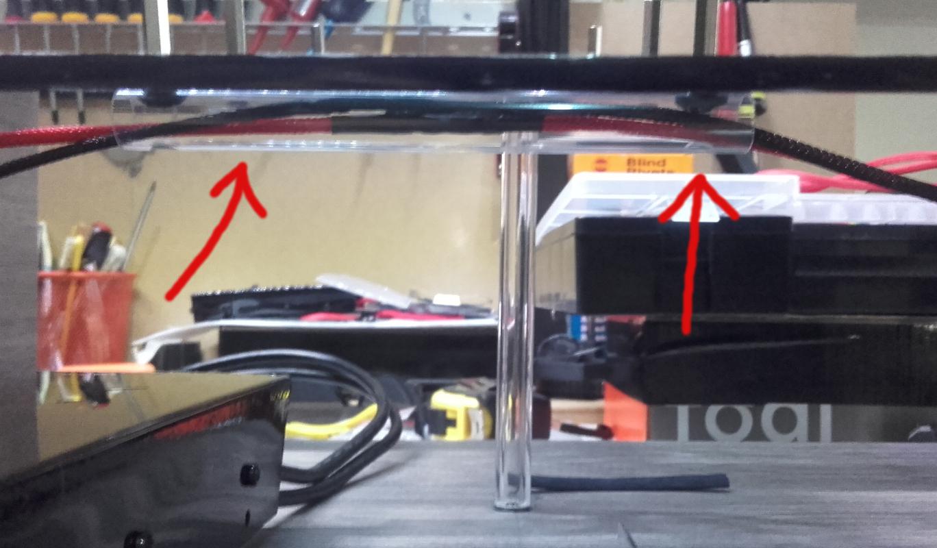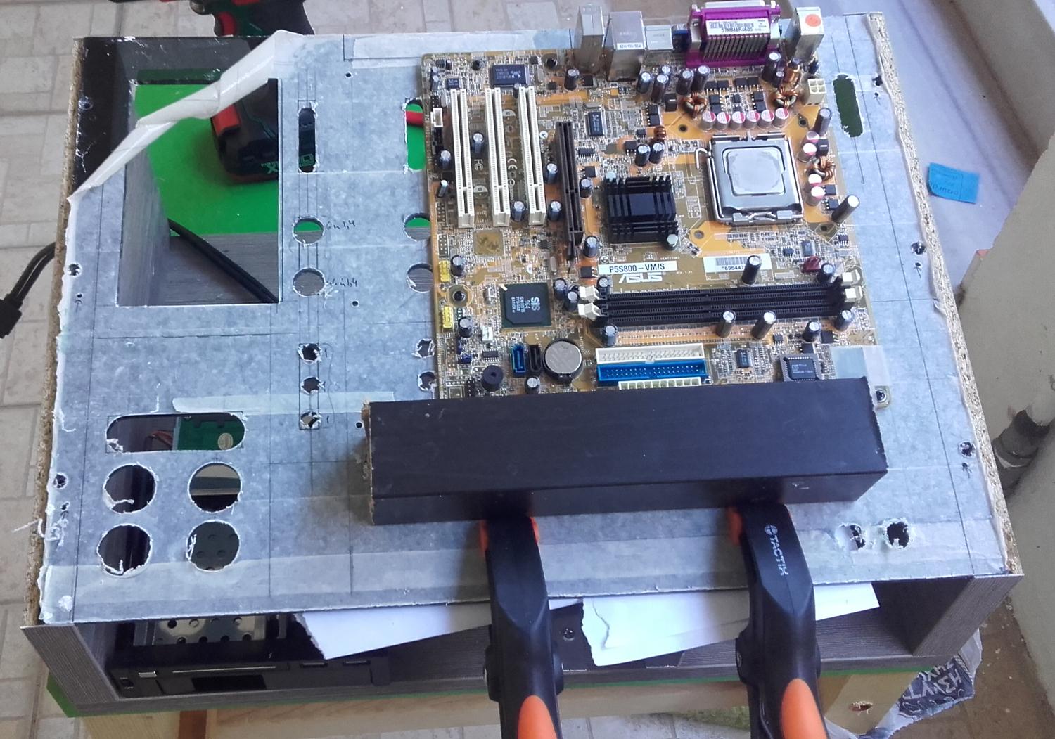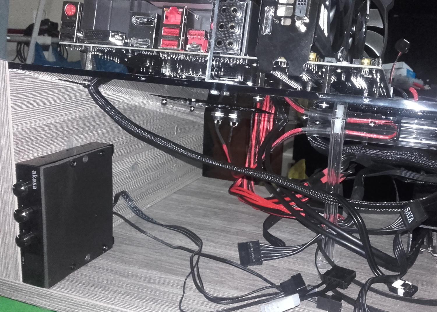 * * * Benchtable Lab Base 69 * * * worklog project Τρίτο κατά σειρά project μου μετά τα " Pumpkin Dr.Dre και την αλλαγή του σε Viper69 '' και "Plexi Bench Modular 69" (εκτελεί χρέη home theater) " παίρνει σειρά το Benchtable Lab Base που θα χρησιμοποιείται στο εργαστήριο για επισκευές και διάφορες μετρήσεις (όταν υπάρχει χρόνος). Υλικά που χρησιμοποιήθηκαν και κόστος plexiglass 5mm 49χ35 (κόστος 8€) μελαμίνη 8mm και 1,8cm (κόστος 20€) σωλήνας inox διάμετρος 15mm - τοίχωμα 1mm ( κόστος 90cm/5€) ποδαράκια 3€ λαστιχένια και καπάκια από absolut (με μέτρο την vodka) 8 μεταλλικοί αποστάτες (2€/0.25€ τεμάχιο) 2 led (κόστος 0.20€) 2 button (κόστος 1.50€ κόκκινος, 1€ μαύρος) sleeve kit black και red υπήρχαν θερμοσυστελλόμενα βίδες, ροδέλες και παξιμάδια 2€ γωνίες αλουμινίου και πλαστικού (κόστος και τα δυο 6€) Σύνολο 51€ Εργαλεία Σέγα, τρυπάνι διαβάθμισης , πολυεργαλείο για τρίψιμο κόψιμο και λείανση, γυαλόχαρτα, σφιγκτήρες, πιστόλι θερμού αέρα, κολλητήρι, πινέλο, γωνιακός τροχός, βάση λύγισμα του plxeiglass κατά γωνία 90°. Κατασκευή Ένωση της μελαμίνης με την βοήθεια των γωνιακών σφιγκτήρων, τρύπημα, ξυλόκολλα και βίδωμα. Όσον αφορά την μελαμίνη χρησιμοποίησα 2 διαφορετικά πάχη 8mm και 18mm, η πιο λεπτή είναι κατά 5mm πιο ψηλή για να δημιουργηθεί το αυλάκι ώστε να κουμπώσει το plexiglass Πήρα το κομμάτι του plexiglass 49x35 και τοποθέτησα τις μητρικές για να σημαδέψω τις οπές, σειρά είχε το τροφοδοτικό για να δω που/πως θα τοποθετήσω τα πράγματα όπως επίσης και τι άλλες τρύπες/κοψίματα θα πρέπει να γίνουν για το πέρασμα των καλωδίων. εφόσον έγιναν τα παραπάνω άρχισα τα τρυπήματα και τα κοψίματα με την βοήθεια τρυπανιού διαβαθμίσεως και της σέγας Έπρεπε να φτιάξω βάση για την στήριξη της κάρτας γραφικών ή άλλης κάρτας, αφού μέτρησα και σημάδεψα που θα έμπαινε, έκοψα σωλήνα plexiglass, τον χρησιμοποίησα ως κολονάκια πάνω στα οποία θα ακουμπούσα γωνία αλουμινίου. Για να στηριχθούν τα κολονάκια χρησιμοποίησα πλαστικούς αποστάτες και αφού ζέστανα τον σωλήνα τοποθέτησα σε κάθε άκρη από έναν για να μπορέσω να βιδώσω και στηρίξω την βάση. ΌΜΩΣ έφαγα άκυρο μιας και οι σωλήνες* εμπόδιζαν τις θύρες, δεν θα μπορούσα να κουμπώσω το βύσμα στην κάρτα γραφικών. Από ρετάλια που έχω από plexiglass πήρα κομμάτι 2mm σχεδίασα και το χρησιμοποίησα αντί για του σωλήνες και αφού τα ζέστανα έκανα και τα απαραίτητα λυγίσματα, έκοψα και από το αλουμίνιο και έφτιαξα μικρές γωνίες για να τα στηρίξω. *Οι σωλήνες χρησιμοποιήθηκαν αλλού, θα δείτε στο τέλος που Πάμε στου δίσκους, ήθελα κάτι για πιο γρήγορη πρόσβαση (τυχερός) μου είχε ξεμείνει tray συρταριού για 3,5", 2,5" και extra (USB3 ports). Έπρεπε να κάνω κάποιες μετατροπές για την στήριξη του, επίσης έφτιαξα και μια καλυπτρα για να μην είναι χύμα. Η καλύπτρα λυγίστηκε με το πιστόλι θερμού αέρα και με το "εργαλείο" που είχα φτιάξει παλιότερα για να μπορώ να λυγίζω σε 90 μοίρες. Επίσης έφτιαξα και μια extra βασουλα για 2,5 δίσκο από την γωνία αλουμινίου που είχα. Πάμε και στο σημείο που γέλασα, κάπου είναι χρήσιμα και τα πιώματα που κάνουμε Κοιτώντας τιμές για τα ποδαράκια μιας και είχα χρησιμοποιήσει παλιότερα της lian li (τα είχα πάρει 5-6€) τώρα είχαν 9-10€ και δεν ήταν άμεσα διαθέσιμα και το giveaway από τον διαγωνισμό έτρεχε, έψαχνα εναλλακτική. Έπεσε το μάτι μου πάνω στα άδεια μπουκάλια από absolut που έχω κρατήσει, παρατηρώντας καλύτερα βλέπω τα καπάκια (ασήμι, μεγάλα σε μέγεθος) και εκεί αρχίζω να παίρνω πάλι μπρος (ως αναλαμπή μου έρχονται κάτι λαστιχένια ποδαράκια που είχα δει στο eshop), μετράω (στο καπάκι) εσω