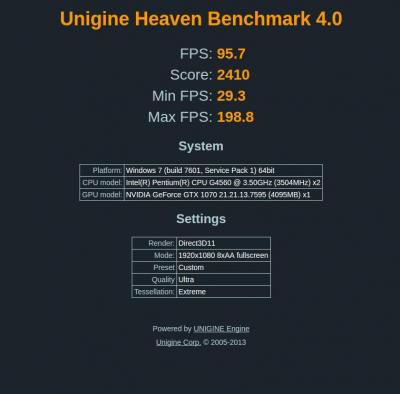 Μιας κι έστησα πρόχειρα το παρακάτω μηχάνημα gtx1070+ b250m + pentium 4560* 3.5Ghz + 8gb ram + sandisk extreme pro 240gb σε Win7, σκέφτηκα να πάρω μετρήσεις στο heaven και στο tomb raider (έγινε με 16gb ram μιας ξέμεινα από μνήμη) με στοκ ρολόγια και να δω πως τα πάει ο *μικρός. -