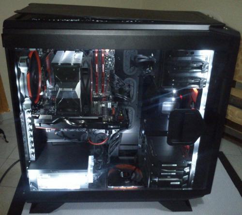Έγινε αλλαγή της μητρικής και μερικές νέες προσθήκες H ποιότητα του κουτιού είναι αρκετά καλή. 2 πράγματα που δεν μου άρεσαν είναι το cage του σκληρού και η βάση που βιδώνεις το τροφοδοτικό δεν έχουν καμία σχέση με την υπόλοιπη ποιότητα του κουτιού, μπορούσαν να είναι καλύτερα. Μου έβγαλε το λάδι να τοποθετήσω τα πράγματα, αλλά κατάφερε και χώρεσε bequite shadow rock slim , λόγω του πλάτους της ψύκτρας δεν μπορείς να βάλεις τον ssd ή hdd στις βάσεις που έχει κάτω. Έφτιαξα δικιά μου βάση από plexi και έβαλα τον ssd πάνω στο τροφοδοτικό.