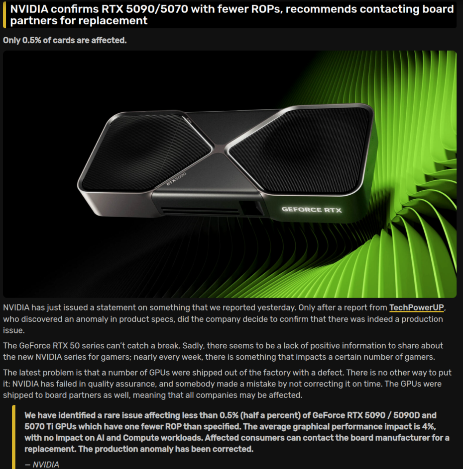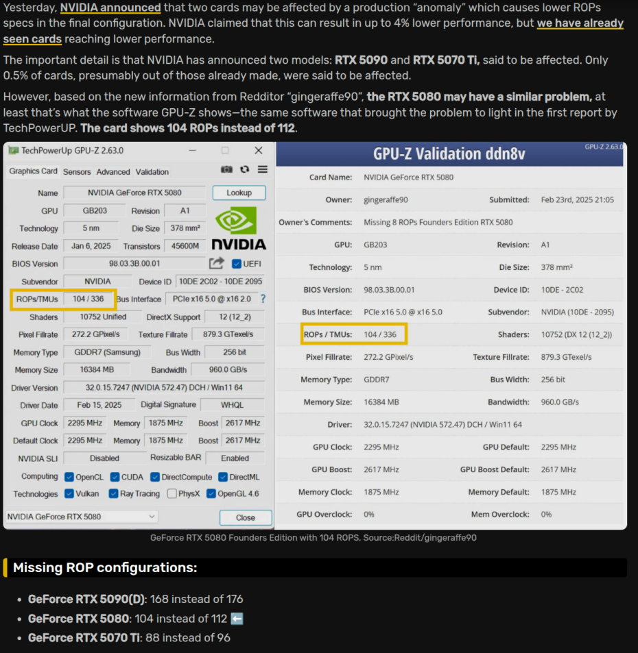 πάρε και σ'εμάς μετοχουλες First GeForce RTX 5070 Ti discovered with reduced ROP count: 88 instead of 96 -