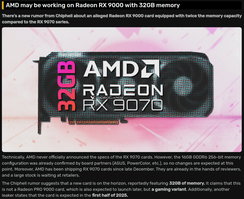 Έτσι είχα διαβάσει κι εγώ και "υπολόγιζα" ότι θα βγάλει την 9070xt στα 500-550€ και 9070 γύρω στα 400€ Με τις ονομασίες και η amd τα έχει κάνει αχταρμά από την προηγούμενη σειρά. Για μένα οι 7900 (xt,xtx,gre) ήταν η 7800 σε tier και η 7800 ήταν σε tier η 7700, απλά έπαθε ngridia. Τώρα η 9070 & 9070xt όπως τις έχει πει θα έπερεπε να αντιστοιχεί στις 7700 & 7700xt. Μάλλον επειδή δεν της βγήκε το όνειρο με βάση κάποια rumors που ήθελε να τις τιμολογίσει στα 750$ και 900$, θα βγάλει μια πουσαρισμένη 9070 XTX με 32GB (και θα είναι όπως η 7600xt με τα 16gb) ή με άλλον πυρήνα και όντως καλύτερες επιδόσεις.