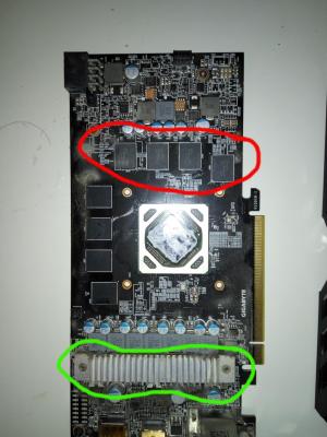 Δεν υπάρχουν pads επειδή ψύχονται απευθείας από τον ανεμιστήρα της κάρτας, στο κόκκινο κύκλο ο αέρας περνάει μέσα από τα fins της ψύκτρας και τα ψύχει. Συνήθως στα τσιπάκια των rams είναι 1 ή 1,5 mm πάχος αλλά θέλει και λίγο ψάξιμο, αν υπάρχει παχύμετρο θα μπορούσες να κάνει μια προσπάθεια να κάνεις την μέτρηση. Από gigabyte r9 290 http://www.overclock.net/forum/72-ati-cooling/1593115-gigabyte-r9-290-windforce-thermal-pad-replacement-thickness.html 1.25 γράφει οπότε πας σε 1,5 για να πιεστούν λίγο *στην evga που είχα αλλάξει είχα βάλει 1,5mm https://www.thelab.gr/forums/topic/172925-gtx-1070-reviews-παρουσιάσεις-μελών-απορίες-και-προβλήματα/?do=findComment&comment=2561095 (άνοιξε το 2ο spoiler στο παραπάνω link) -- -- στην παρακάτω φωτογραφία στον πράσινο κύκλο κάτω από το ψυκτρούλα, είναι τα vrm's που αν θέλεις αλλάζεις και το thermal pad που έχει από κάτω (μιας και την έχεις ανοίξει στην θέση σου θα το άλλαζα κι αυτό) -- -- την kryonaut θα χρησιμοποιούσα κι εγώ για πάστα.