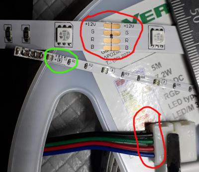 Πριν κάνω την παραγγελία κατά τύχη είδα ότι χρειάζεται ο αντάπτορας. Οκ λες με τον αντάπτορα, μ'έναν μπορείς να συνδέσεις 2-3 ...frames, αλλά με τα διαφορετικά χρώματα στην ταινία και τα frames ξενέρωσα, λέω ok θα χρησιμοποιήσω εξωτερικό controller αν χρειαστεί να μπει ταινία rgb. Αφού είχα ξεβιδώσει το ένα frame και είχα στα χέρια την slim ταινία είπα να δω τι παίζει με τις κολλήσεις κι αν αντιστοιχούν οι χρωματισμοί με την κανονική ταινία. H rgb που έχω είναι της geyer, οι θέσεις/σειρά των χρωμάτων συμβαδίζουν με αυτά της μητρικής αλλά όχι με το halo frame. To περίεργο είναι ότι σκέτα τα frames δουλεύουν σωστά τα χρώματα, όταν συνδεθεί η ταινία έχει άλλο χρώμα όπως έχω γράψει. Το έψαξα παραπάνω να δω τι στον .... γίνεται, την διαφορά που έχουν στις θέσεις τα χρώματα την διορθώνουν με τον αντάπτορα αλλάζοντας θέσεις στα pin του ακροδέκτη και βάζοντας τα με την σωστή σειρά 12V-GRB. Καλά μέχρι εδώ, αλλά γιατί δεν απεικονίζετε σωστά στην ταινία led και διαφέρουν, μπλε τα frame κόκκινο η ταινιά παράδειγμα. Η ταινία θα συνδεθεί στην διακλάδωση του αντάπτορα όπου τα καλώδια έχουν λάθος σειρά και αλλάζει τις θέσεις των χρωμάτων. Με λίγα λόγια διορωνει τα frames και χαλάει την σειρά στην ταινία led. Φαίνεται η λ@λ@κία τους στην παρακάτω φώτο α) Με κόκκινο κύκλο αλλαγή των καλωδίων και η διόρθωση που κάνει στον ακροδέκτη. β) Στον πράσινο κύκλο ο διακλαδωτής όπου συνδέεται η ταινία led και "χαλάει" αλλάζει η σειρά των χρωμάτων της ταινίας. γ) με κόκκινη γραμμή στο γκρι καλώδιο είναι τα 12Volt Δεν ξέρω αν είμαι κάπου λάθος, αλλά με βάση τα παραπάνω που το κοίταξα καλύτερα αυτό το συμπέρασμα βγάζω.- 4 comments