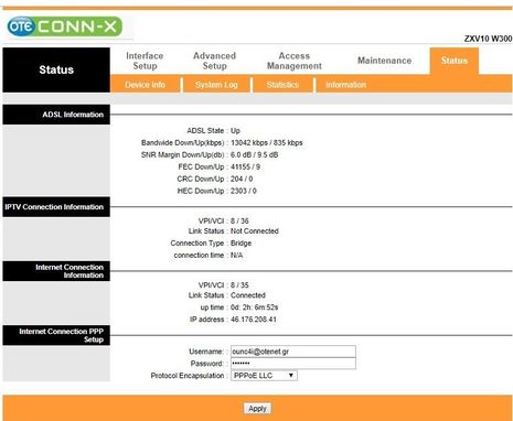 το ρουτερ δυστυχώς κάηκε, είχε πάρει λάθος firmwere από άλλο μοντέλο συκσευση ρουτερ, στην προσπάθεια μου μήπως και ανεβεί η ταχύτητα, τέλος πάντων τώρα είμαι με vodafone και πάνε όλα μια χαρά, 1 χρόνο σχεδόν ούτε χάλασε η γραμμή ούτε η ταχύτητα έπεσε γύρω στα 12,7 είναι, και ίσως πάω και για vdsl και πολύ καλή εξυπηρέτηση σε σχέση με τους άλλους -