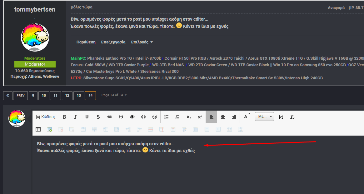 Btw, ορισμένες φορές μετά το post μου υπάρχει ακόμη στον editor... Έκανα πολλές φορές, έκανα ξανά και τώρα, τίποτα. ? Κάνει τα ίδια με εχθές -