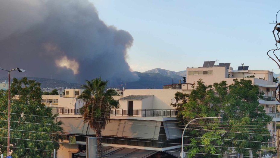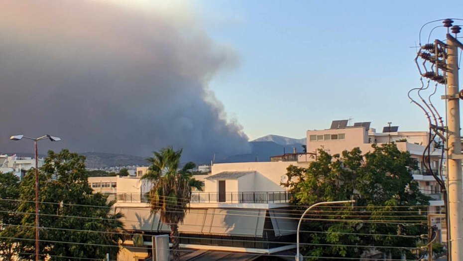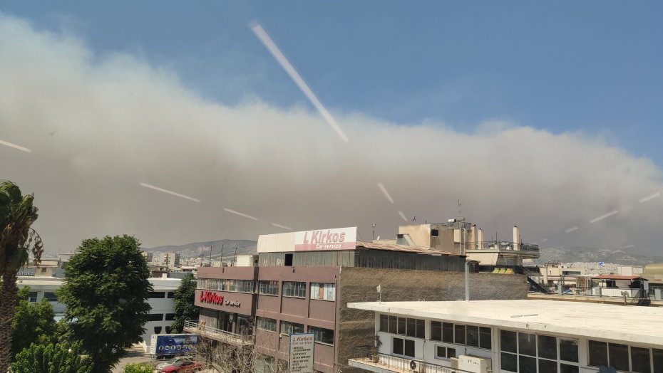 Η φωτιά πριν από λίγο, απ'την ταράτσα μου. Βλέπω ξεκάθαρα τις εστίες της φωτιάς. Έχει φτάσει Άνω Λιόσια και απειλεί έντονα σπίτια. -