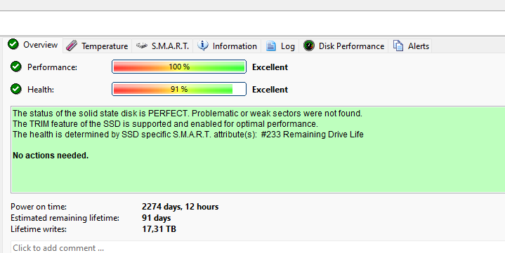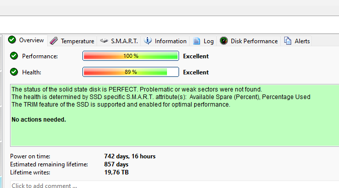 Στο reddit θα βρεις πολλά και διάφορα από διάφορους χρήστες, το main issue ήταν πως ο 630 είχε πραγματικά κακές επιδόσεις λόγω υπερθέρμανσης. Το expected lifetime του είναι επίσης μικρό, ωστόσο δεν ξέρω σε τι φάση μπορεί να "ψοφήσει" ο ssd. Λέγοντας όμως για μικρό lifetime, θέλω να πω κάποια παραδείγματα οικιακής χρήσης κάποιων SSD, για να'χεις ένα μπούσουλα. ADATA XPG S11 Gammix (nvme). Δίσκος συστήματος, το PC μου έχει κλείσει λίγες φορές. Επίσης το drive έχει μπει σε 2 διαφορετικές μητρικές. Το drive έχει ~20ΤΒ εγγραφές και έχει 89% υγεία. Αυτά σε 2+ χρόνια χρήσης (Απρίλη του 21 αγοράστηκε) , χωρίς τρελά σβήσε-γράψε αλλά και με ένα Windows Update (από 10 σε 11). Σε 2 χρόνια έχασε 10% της υγείας του. Μέχρι να πεθάνει τελείως, θα έχω αλλάξει όλο το σύστημα Αυτό στο γράφω γιατί ανησυχείς για τα 100 ΤΒ για τους Patriot. Ωστόσο αν το σβήσε-γράψε είναι πολλά GB καθημερινά, σίγουρα θα "ψοφήοσυν" ταχύτερα. Σε φυσιολογικές συνθήκες, όμως, κρατάνε πολλά χρόνια (εκτός απρόοπτου θανάτου) Και εδώ, ο παλιότερος SSD που'χω μέσα στο σύστημα, τον οποίο χρησιμοποιώ ακόμη, για κάποια games. OCZ Vector 180. Δεν καταλαβαίνει τίποτα, θηρίο! Υπήρξε από δίσκος συστήματος, μέχρι ό,τι φαντάζεσαι. Δεν ξέρω αν τα TB που αναφέρει το Hard Disk Sentinel, είναι σωστά, μου φαίνεται ότι τα σβήσε-γράψε που'χω κάνει σε αυτόν είναι πολύ περισσότερα, αλλά μπορεί να γελιέμαι. Γενικά. θέλω να καταλήξω πως, δεν ψοφάνε όσο εύκολα νομίζουμε. Θέλουν τρελό abuse και αν είναι να κάνεις βαριά χρήση, απλά κοιτάς σε κάτι περισσότερο αξιόπιστο, για να 'χεις το κεφάλι ήσυχο. Δηλαδή αν είναι να γλιτώσεις 5-10€, δυστυχώς δε χρειάζεται να το ψάχνεις πολύ, πας στον επόμενο που είναι πιο αξιόπιστος και οι πηγές σου αναφέρουν ότι είναι οκ. -