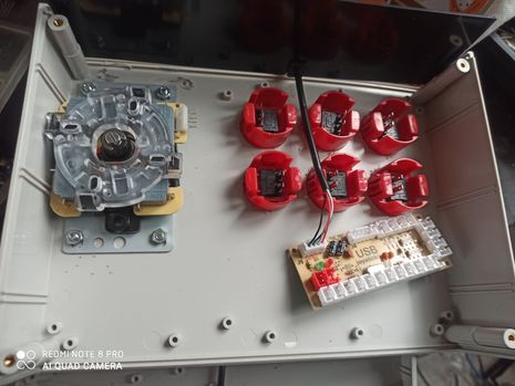 Μια μικρη κατασκευη της καραντινας... Δεν ειναι κατι ιδιεταιρο (ετοιμο κιτ ειναι ετσι κι αλλιως) αλλα ειχα τα υλικα εδω και καιρο και δεν ειχα κατσει να το φτιαξω, παρολο που δεν πηρε πανω απο 25-30 λεπτα (κι απ αυτα τα πιο πολλα για να σημαδεψω για τις τρυπες στο κουτι). Το κιτ περιλαμβανε την πλακετα του controller (υπερπλουσια για πανω απο 10 διακοπτες + διαφορες λειτουργιες για κερματοδεκτες, mode, turbo, ξεχωριστα κουμπια up/down/l/r κτλ κτλ κτλ ) 8 μεγαλα μπουτον Φ30 απ τα οποια χρησιμοποιησα τα 6, 2 μπουτον Φ22, το joystick καθως και αρκετα καλωδια ετοιμα (την καλωδιοταινια του joystic την αντικατεστησα με δικη μου για να τη φτιαξω οπως τη θελω, ενω τα υπολοιπα με βολεψαν τα ετοιμα μια χαρα) κι φυσικα το usb 2. Ουσιαστικα το μονο που χρειαζεται να προσθεσει καποιος ειναι το κουτι. Στο επομενο βημα θα του προσθεσω κι ενα μεγαφωνακι (usb ενισχυτακι εχω αλλα δεν ειχα κανενα μεγαφωνο τοσο μικρο για να χωρεσει εκει μεσα)