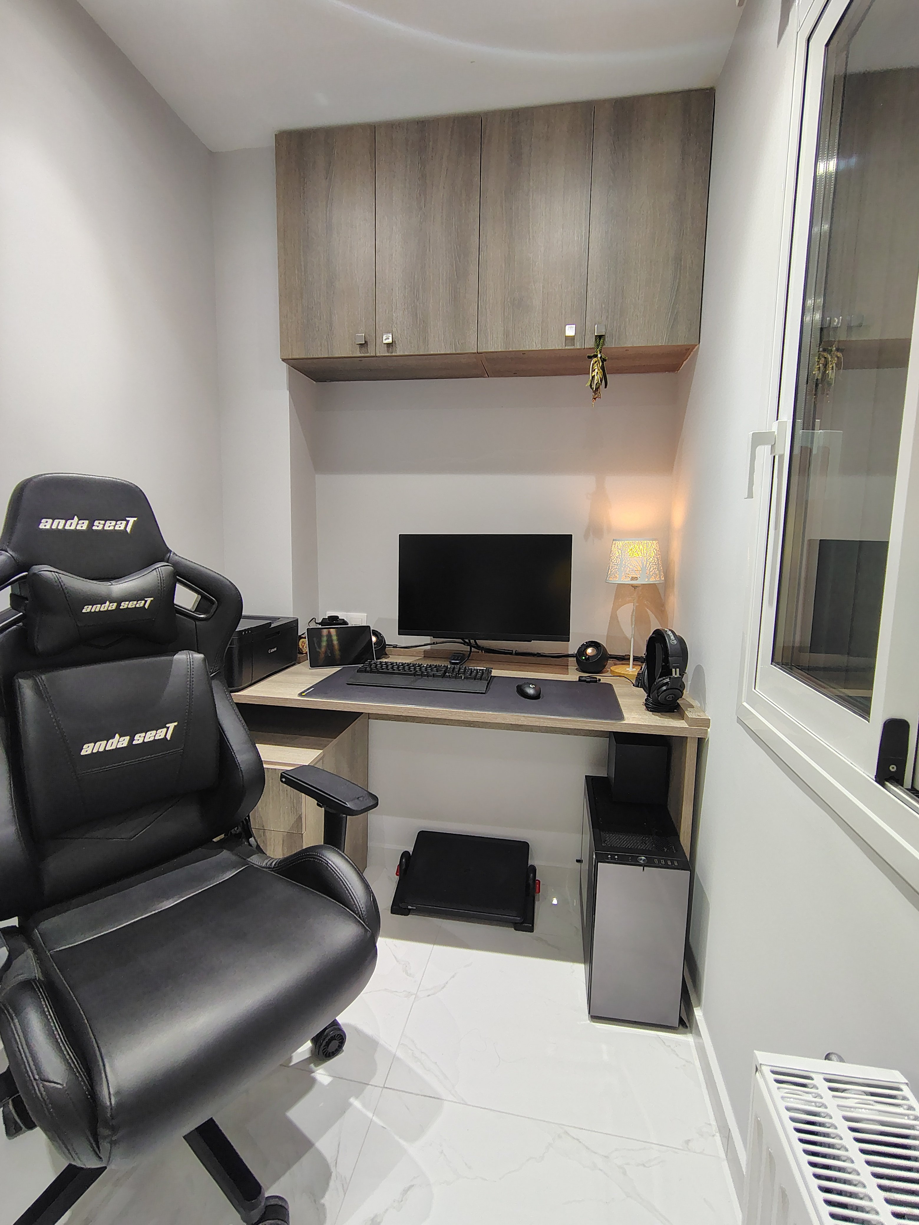 Νέο σπίτι, νέο γραφείο. Είπα να εκμεταλλευτώ μια γωνιτσα , μίλησα και με το μαραγκο για καστομ κατασκευή στα μέτρα μου... Τελικά η συνεννόηση ήταν λίγο μέτρια, όπως και το αποτέλεσμα... Anyway, αυτό είναι το κονάκι μας πλέον