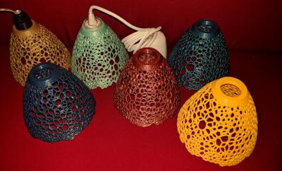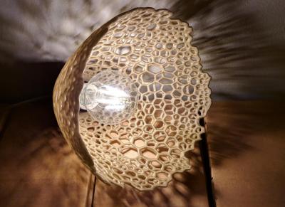 Ένα ολοκληρωμένο 3d printed project. Καπέλο λάμπας για Ε27 ντουί. Έχει σπειρώματα ώστε να βιδώνει απευθείας σε ντουί E27 και μπορεί να συνδυαστεί εύκολα με έτοιμες λύσεις όπως το Ikea Sekond. Το βασικό σχέδιο και τα σπειρώματα τα σχεδίασα στο fusion 360 και το μοτίβο το έκανα με meshmixer pattern. Δωρεάν προγράμματα και τα 2. Σχεδίασα δικό μου κάλυμμα για το ταβάνι και οι 2 τρύπες δίπλα από την τρύπα για το καλώδιο τελικά δεν είναι απαραίτητες. Με ένα zip tie στο καλώδιο κάθεται το κάλυμμα στο ύψος που θέλεις. Ανάλογα την LED λάμπα θολή ή καθαρή (περίβλημα) το μοτίβο φαίνεται λιγότερο ή περισσότερο στο ταβάνι. Προς το παρόν έχω αφήσει την θολή, αλλά η παρακάτω φωτογραφία είναι με το μπλέ καπέλο και led filament λάμπα καθαρή (αυτή που είναι σβηστή στην πρώτη εικόνα με το λευκό καπέλο). Το πλαστικό που χρησιμοποιώ για εκτύπωση και νομίζω είναι το πιο κατάλληλο για αυτή τη χρήση είναι το PETG (παρόμοιο με αυτό που φτιάχνουν τα μπουκαλάκια νερό).