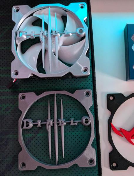 Diablo 3 fan grill για το Necromancer build. Το πάνω είναι satin silver PLA όπως βγήκε από τον εκτυπωτή χωρίς βάψιμο-τρίψιμο κλπ. Το κάτω είναι η πρώτη δοκιμή-σχέδιο σε απλό ασημί PLA. Είμαι πολύ ευχαριστημένος από το φινίρισμα. Περιμένω λίγο και με το που έχω την μητρική για το build ξεκινώ build log thread.
