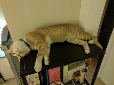 Κλασσικά πάνω στη βιβλιοθήκη ο Lucky.. γιατί καλό το χουζούρι αλλά θέλουμε να επιβλέπουμε κιόλας!!