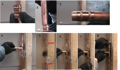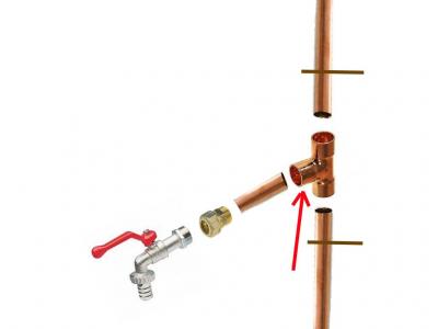 Στη φωτό βλέπετε...ακτινογραφία της βρύσης μου...(παρακαλώ όχι σχόλια για το...καλλιτέχνημά μου...?). Εκεί που δείχνει το βελάκι έχει διαρροή. Οι καφέ γραμμές πάνω στους σωλήνες συμβολίζουν τον τοίχο. Στην πάνω σωλήνα, από την καφέ γραμμή και πάνω είναι τοίχος. Στην κάτω σωλήνα, από την καφέ γραμμή και κάτω είναι τοίχος. Μεταξύ των καφέ γραμμών έσκαψα για να αποκαλύψω το ταφ και μέρος των σωλήνων. Έχω διαρροή. Η διαρροή ξεκίνησε όταν άλλαξα τη βρύση (παρόλο που κρατούσα κόντρα στο ρακόρ, ακριβώς για να μη συμβεί αυτό που συνέβη) Έχω μερικές ερωτήσεις: Α. είναι σωστό μια βρύση να στηρίζεται σε ένα χάλκινο ταφ και δυο χαλκοσωλήνες; Β. αν δεν καταφέρω να κολλήσω ξανά το ταφ με τη μικρή σωλήνα που πάει προς τη βρύση (εκεί, φαίνεται, ξεκόλλησε και υπάρχει η διαρροή) τι επιλογές έχω; Υπενθυμίζω, η πάνω σωλήνα από την καφέ γραμμή και πάνω είναι χωμένη στον τοίχο όπως και η κάτω σωλήνα από την καφέ γραμμή και κάτω. Σκεφτόμουν ένα ταφ που να έχει διατομή ίδια με τις σωλήνες και ενώνεται με 'slip coupling' όπως τα αναφέρει σε αυτό το βίντεο. Υπάρχουν αυτά σαν εξαρτήματα; στις φωτογραφίες βλέπετε το slip coupling: Στην νο5 βλέπετε ότι έχει στερεώσει τα slip couplings στις σωλήνες με flux. Στην νο6 φέρνει το ταφ, στην νο7 βάζει το κάτω μέρος του ταφ στο κάτω slip coupling. Σε αυό το σημείο φαίνεται η χρησιμότητα του slip coupling: αμετακίνητοι σωλήνες, ταφ σταθερών διαστάσεων, και ενώνονται με τα slip couplings που μετακινούνται ελεύθερα. Στην νο8 οχτώ βάζει και το άνω.