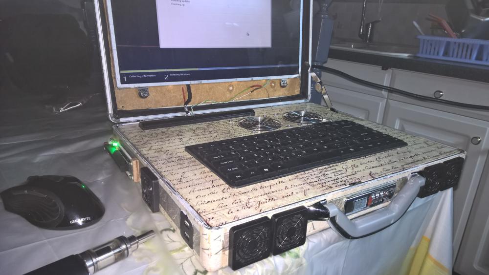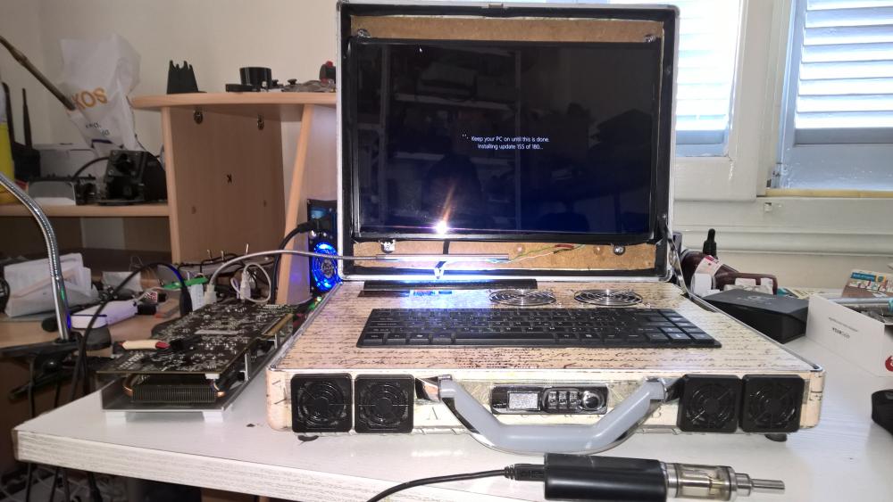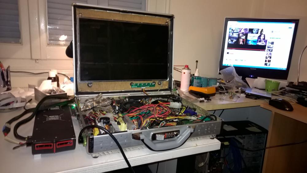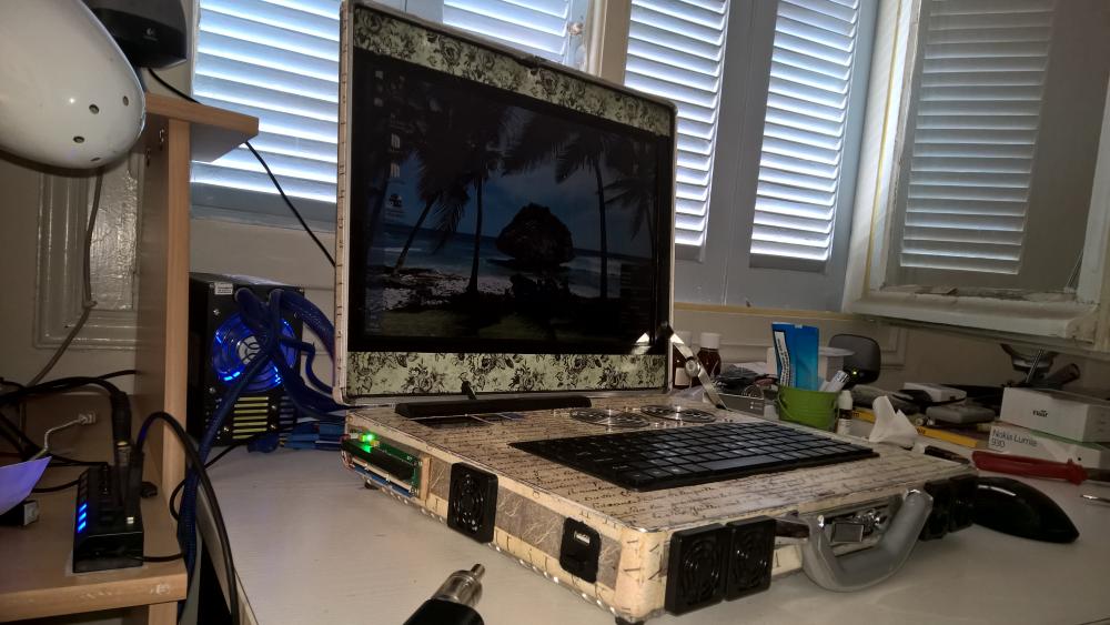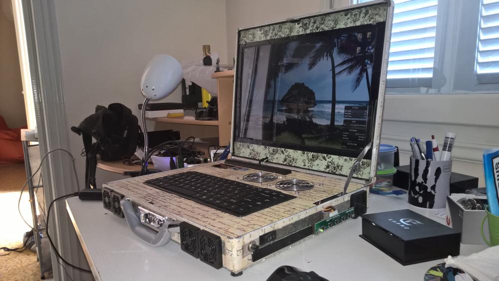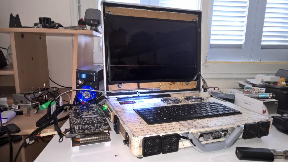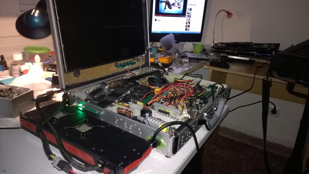 Καλημέρα κ πάλι.Το 3 στην σειρά λάπτοπ.Πλέων μεταφερόμενο με pico psu 200watt.2 φορτιστές.εναν 180watt hp k έναν 40watt εφερδρικό για την οθόνη του.¨Είναι ελαφρύ επειδή ειναι αλουμίνιο κ συνάμα γερό στην κατασκευή.Το κουτί του είναι ένα παλιό dslam.Διαθέτει την αγαπημένη πατέντα για eξωτερική gpu(7870 amd)Πέρνει ρεύμα απο εξωετρικό τροφοδοτικό οταν είναι πάνω.Toshiba x200 οθόνη με controller.Ι3-4330 -8g ram 1600mhz -h81m s2v mobo.