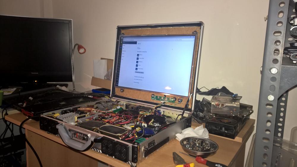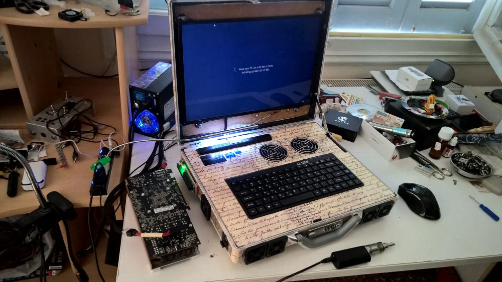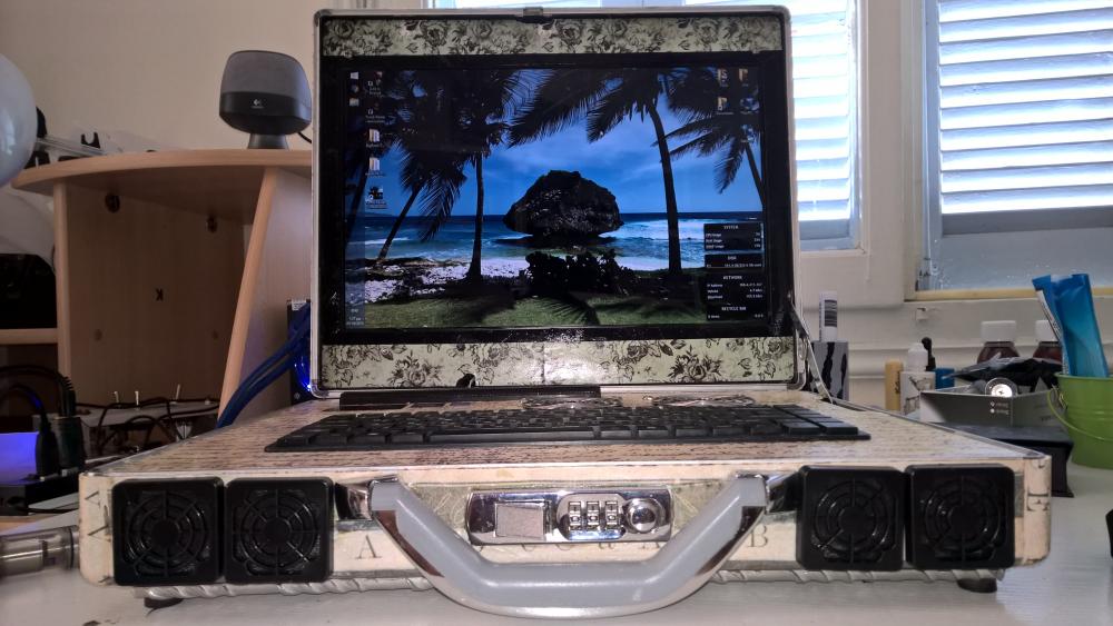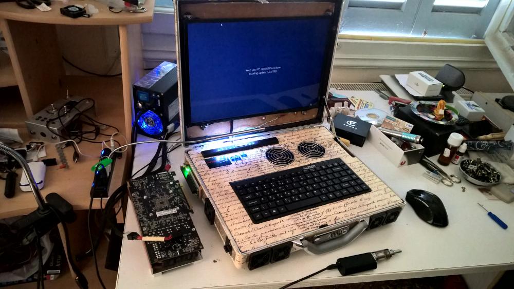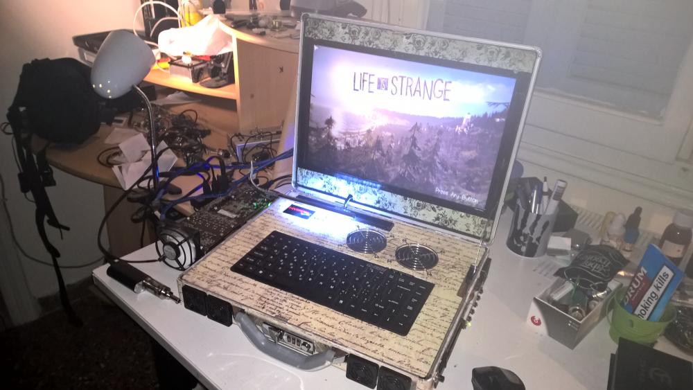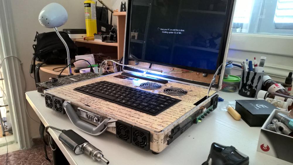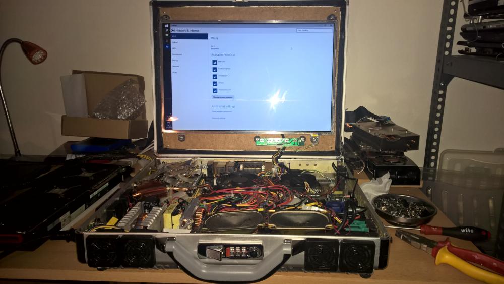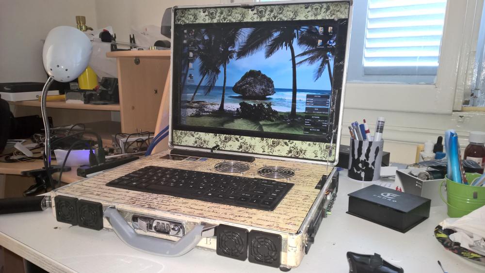 Καλημέρα κ πάλι.Το 3 στην σειρά λάπτοπ.Πλέων μεταφερόμενο με pico psu 200watt.2 φορτιστές.εναν 180watt hp k έναν 40watt εφερδρικό για την οθόνη του.¨Είναι ελαφρύ επειδή ειναι αλουμίνιο κ συνάμα γερό στην κατασκευή.Το κουτί του είναι ένα παλιό dslam.Διαθέτει την αγαπημένη πατέντα για eξωτερική gpu(7870 amd)Πέρνει ρεύμα απο εξωετρικό τροφοδοτικό οταν είναι πάνω.Toshiba x200 οθόνη με controller.Ι3-4330 -8g ram 1600mhz -h81m s2v mobo.