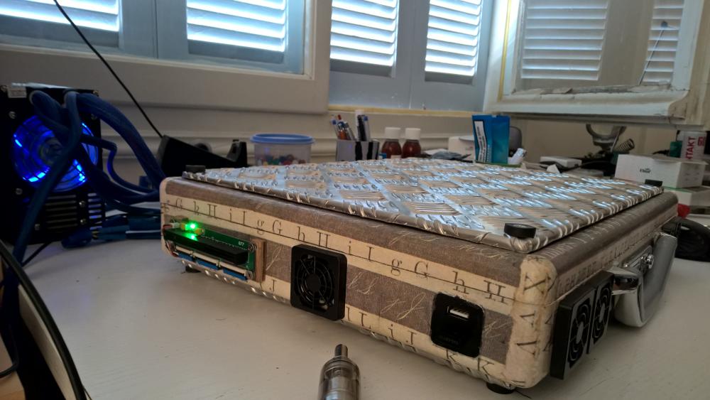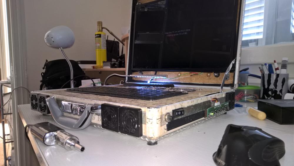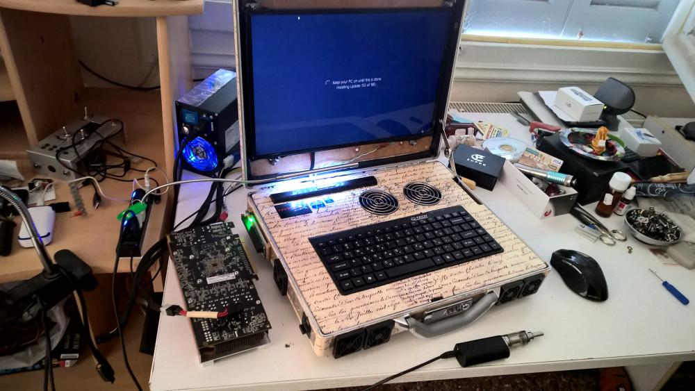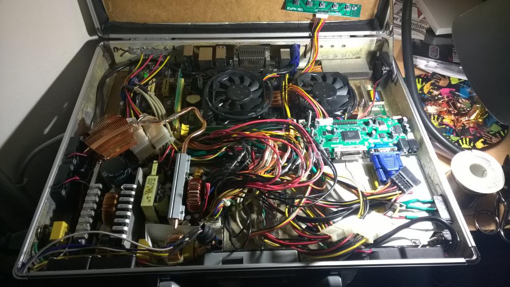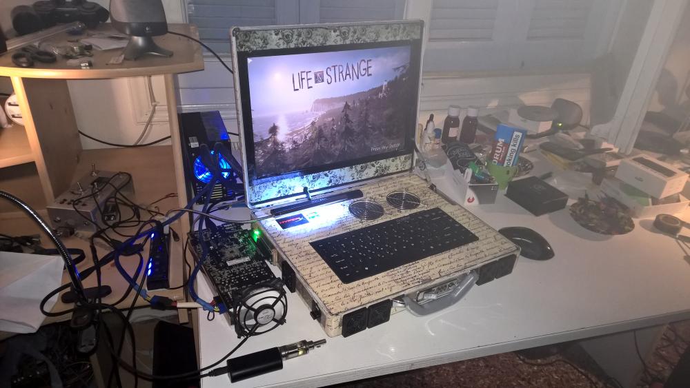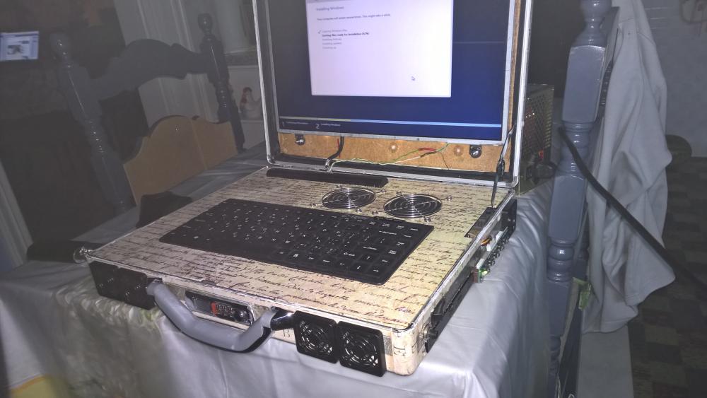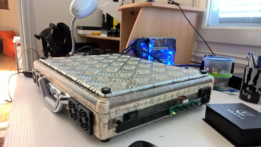 Καλημέρα κ πάλι.Το 3 στην σειρά λάπτοπ.Πλέων μεταφερόμενο με pico psu 200watt.2 φορτιστές.εναν 180watt hp k έναν 40watt εφερδρικό για την οθόνη του.¨Είναι ελαφρύ επειδή ειναι αλουμίνιο κ συνάμα γερό στην κατασκευή.Το κουτί του είναι ένα παλιό dslam.Διαθέτει την αγαπημένη πατέντα για eξωτερική gpu(7870 amd)Πέρνει ρεύμα απο εξωετρικό τροφοδοτικό οταν είναι πάνω.Toshiba x200 οθόνη με controller.Ι3-4330 -8g ram 1600mhz -h81m s2v mobo.