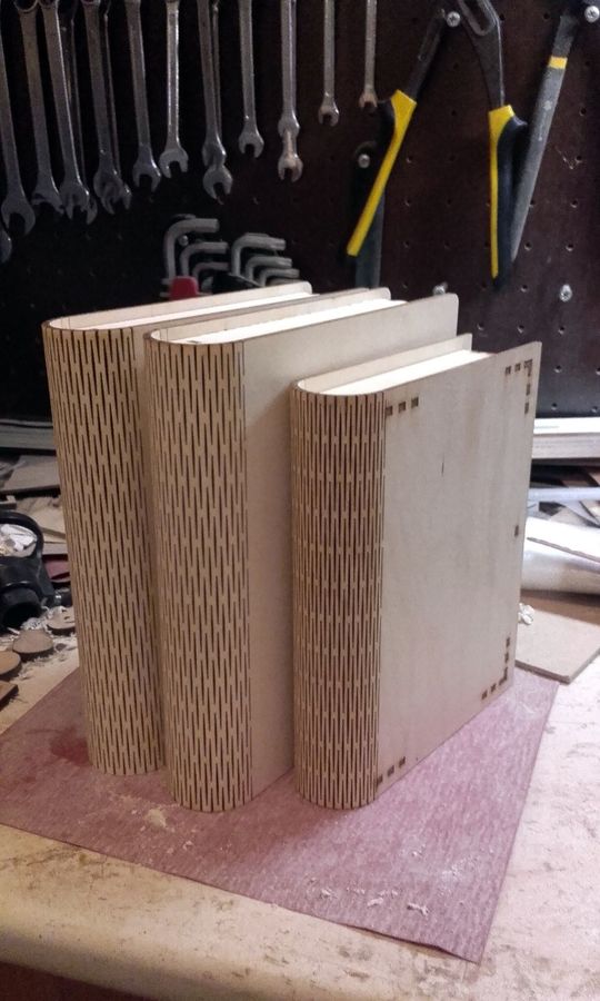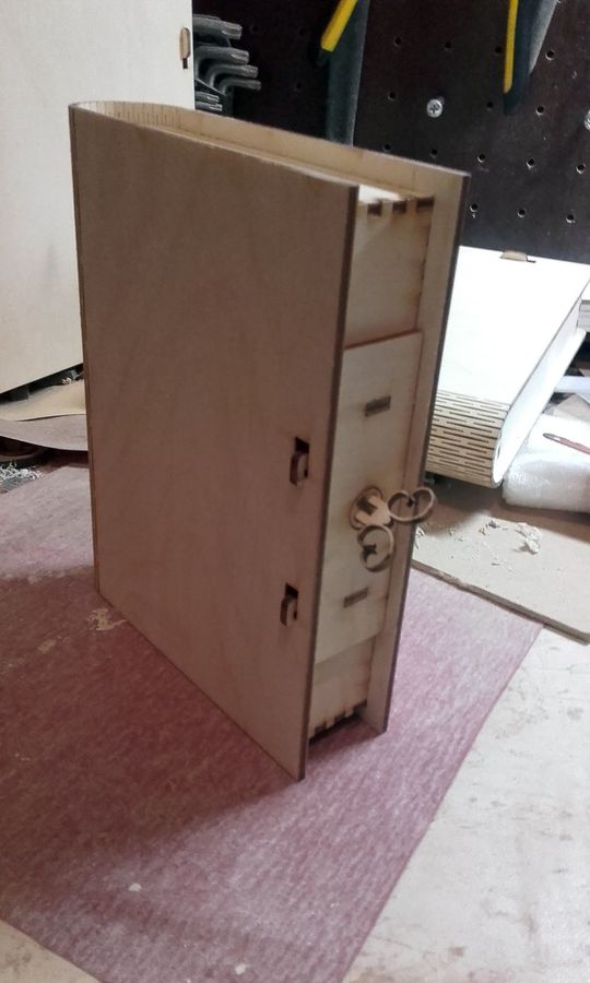 Σήμερα είχε διάβασμα Υλικό κόντρα πλακέ 3mm κόπηκε στο Laser Τα 2 βιβλία με σύρτη για να πιάνουν τα γατζάκια το εξώφυλλο του βιβλίου (19 x 16 x 4cm) Xρόνος κόπης κάπου στα 6 λεπτά Το 2ο βιβλίο με κλειδί (17 x 13.5 x 3.8cm) Χρόνος κοπής 4 λεπτά Θα γίνει άλλο κλειδί (αυτό δεν βγήκε καλό με την αλλαγή των διαστάσεων ) Ξυλόκολλα δεν χρειάζεται- 2.882 απαντήσεις
