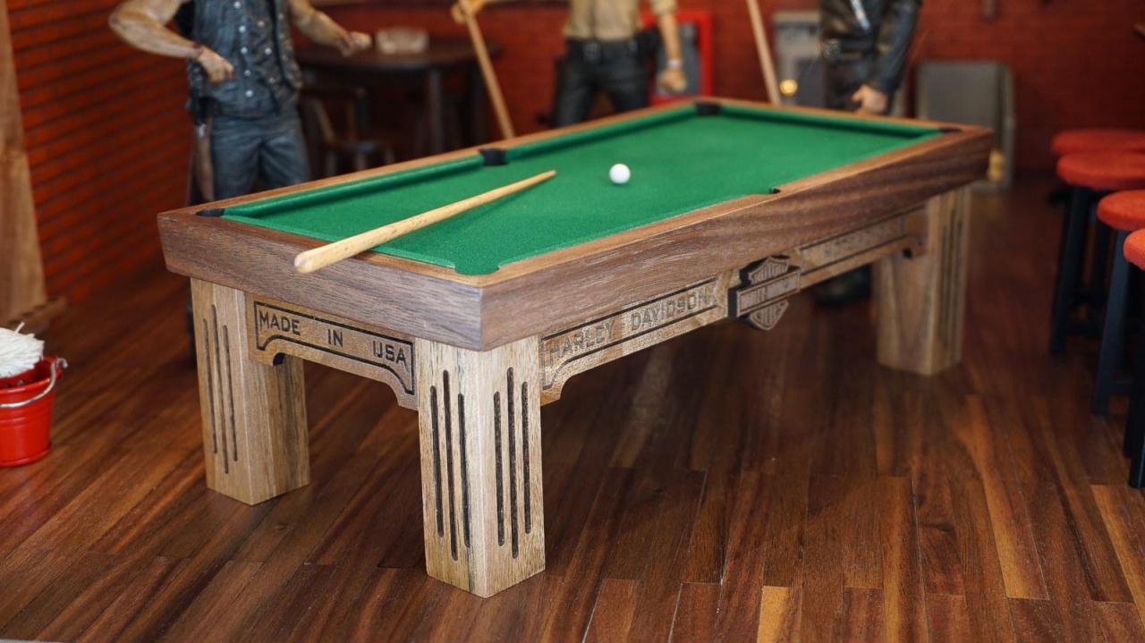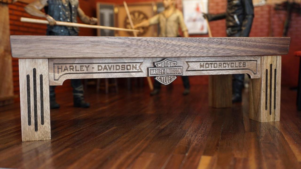 Ράβδος τετράγωνη από ξύλο καρυδιάς 22 x 22mm κόπηκε στα 65mm και "χαράχτηκε" στο Laser για να γίνουν τα νέα πόδια της βάσης του μπιλιάρδου. Ξύλο καρυδιάς πάχους 5mm κόπηκε και "χαράχτηκε" για να γίνουν τα πλαινά της νέας βάσης. Κολλήθηκαν όλα με ξυλόκολλα, και μπήκαν ενισχύσεις εσωτερικά στις γωνίες. Τρίψιμο με γυαλόχαρτο 280 και 2 στρώματα σπρευ ματ βερνικιού με ενδιάμεσο τρίψιμο με γυαλόχαρτο 400 Ξύλο καρυδιάς πάχους 5mm και διαστάσεων 70 x 50mm "χαράχτηκε" και κόπηκε στο Laser για να γίνει το σήμα της Harley Davidson και να μπει στον τοίχο. Τρίψιμο η επιφάνεια με 280 γυαλόχαρτο και 2 στρώματα βερνίκι ματ (σπρευ) με ενδιάμεσο τρίψιμο με γυαλόχαρτο 400- 2.882 απαντήσεις