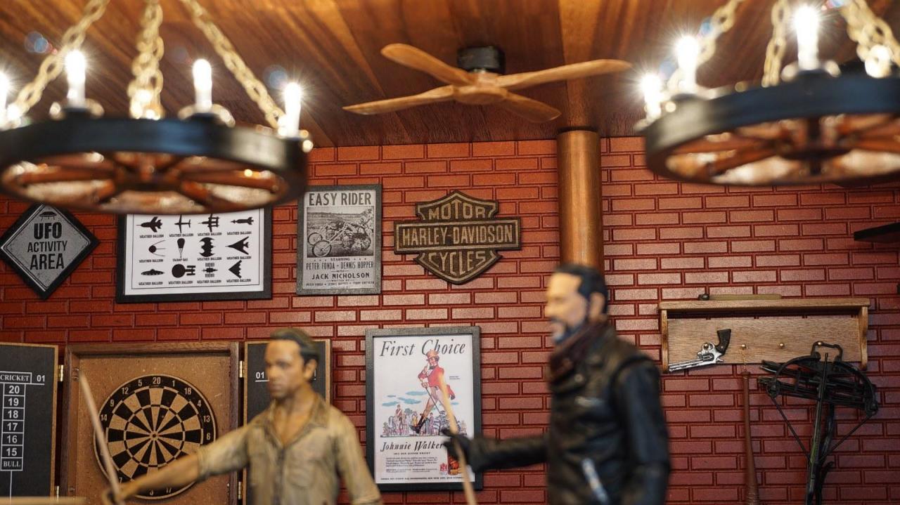 Ολα δεν γίνονται με CNC. Αν είναι πολύ μικρά κομμάτια δεν μπορείς να τα στερεώσεις για να δουλευτούν. Με CNC είναι οι τοίχοι. Κάποια είναι με το χέρι και κάποια είναι με το Laser. Πυροσβεστήρας δίπλα στο μπαρ, ήταν στην φιγούρα της κοπέλας που είναι μπαρ. Η αλυσίδα είναι διακοσμητική του μέτρου από κατάστημα με είδη επιπλοποιίας Κάποια βήματα της διαδικασίας κατασκευής των φωτιστικών δες εδώ -